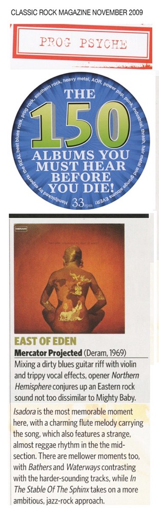 'East of Eden's debut LP is one of the hardest rocking albums to come out of the progressive rock movement, and maybe the best non-Rolling Stones album s issued by English Decca during all of the late 1960s. It's also one of the most daring debut albums of its period, less tightly focused than, say, King Crimson's Court of the Crimson King, but otherwise equally bold and maybe more challenging…..